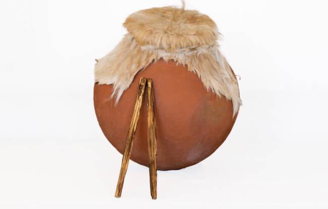 Matière : Bois de savane, Peau de buffle, Boyaux de chèvre
